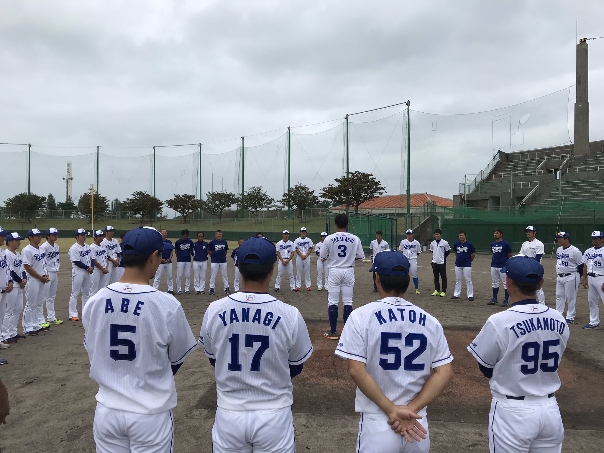 ナゴヤ球場の秋キャンプ打ち上げ❗️選手、スタッフマウンドを囲んで一丸で手締め‼️仁村徹二軍監督は、『ここの選手たちは、沖縄ではなく、ナゴヤ球場に残された意味に危機感持って臨めた。ファンの方に観ていただいて、伸びていくことができました!』と総括。 アナ宮部#ドラゴンズ #CBCラジオ pic.twitter.com/BOtJ3ky0bX
