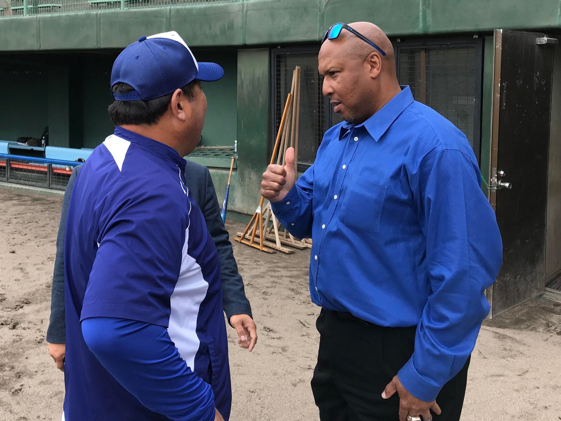また昨日来日し1、2軍の巡回打撃コーチに就任したアロンゾ・パウエル氏が沖縄へ移動、キャンプ最終日でしたが、与田監督をはじめ、ナインらと挨拶を交わしました。 pic.twitter.com/dK1j6y3ya2