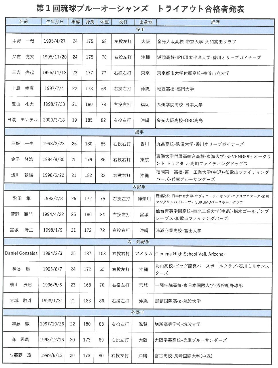 NPB出身者は、明日以降、公表していきます。