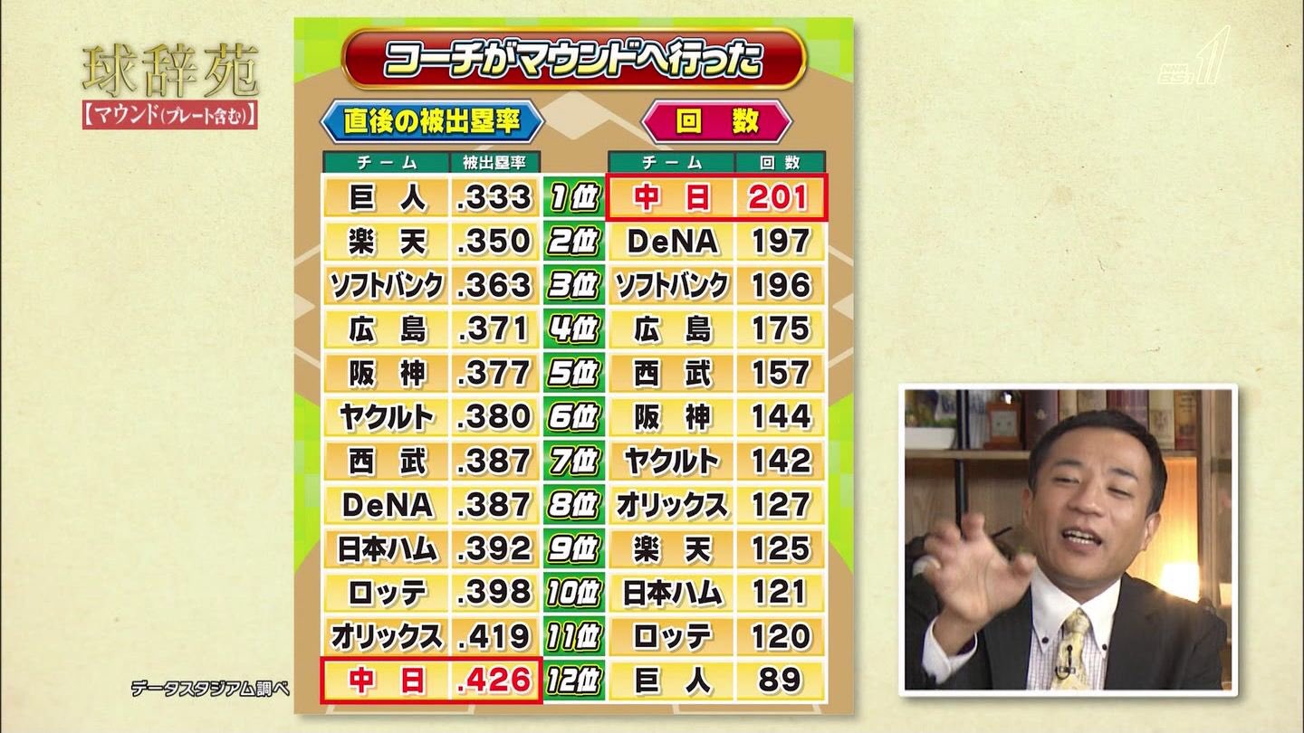 巨人と中日でこれほどまでに差があるデータ。なかなか興味深いですね…