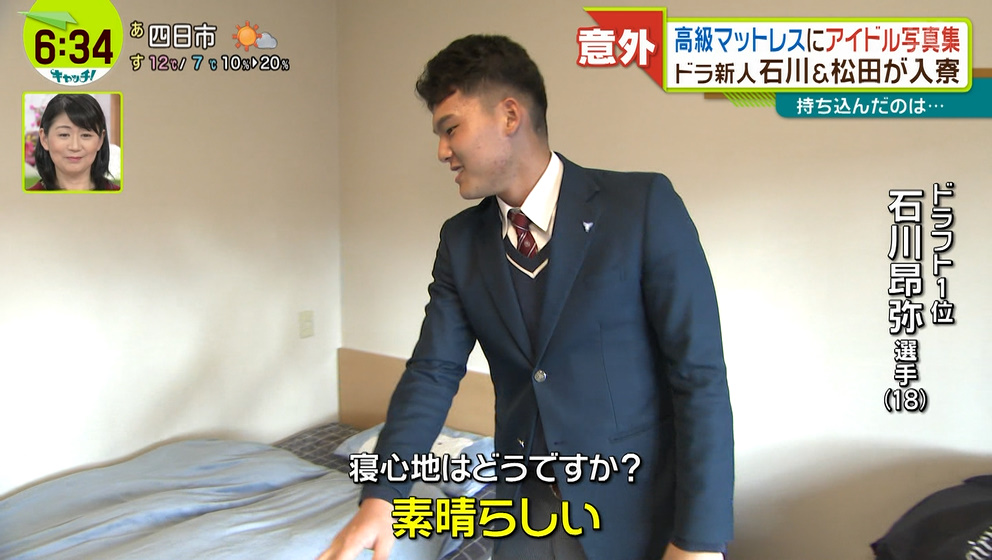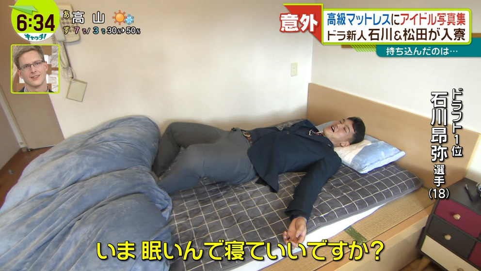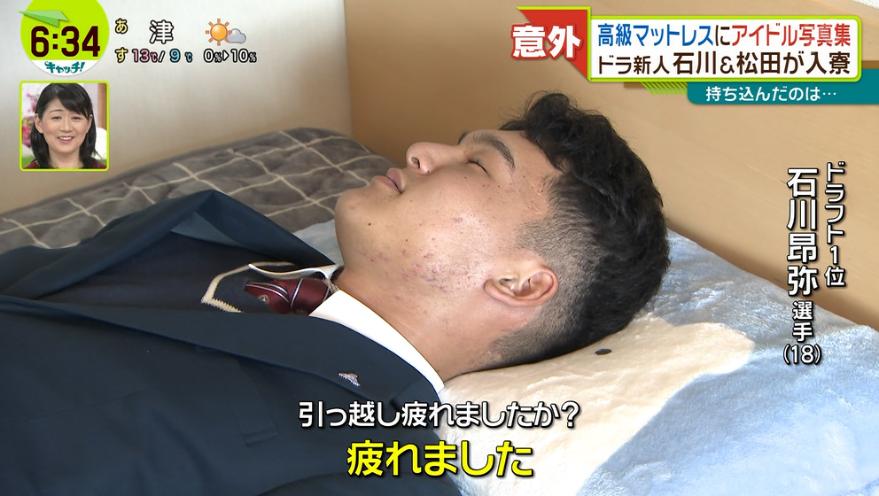 中日ドラフト1位・石川昂弥選手、テレビカメラの前で寝る