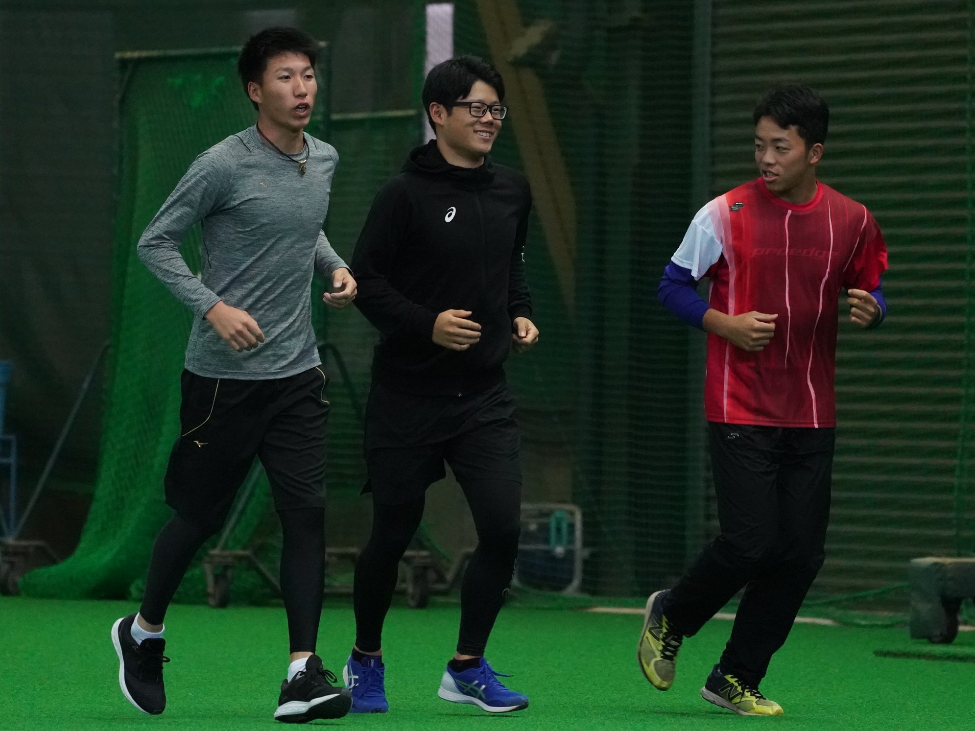 中日の新人7選手が9日、ナゴヤ球場の室内練習場で自主練習。