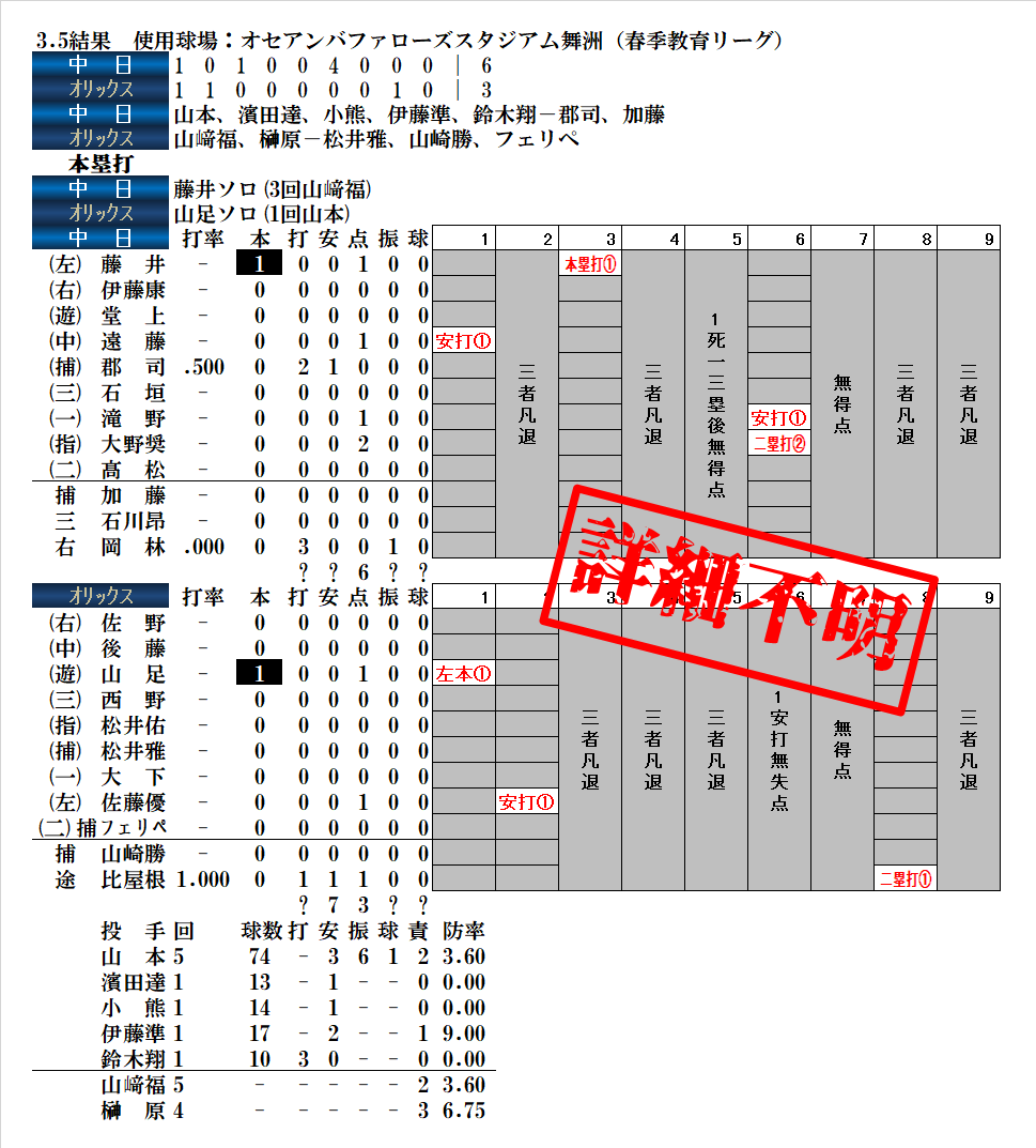 20200305結果 オリックスバファローズ3-6中日ドラゴンズ