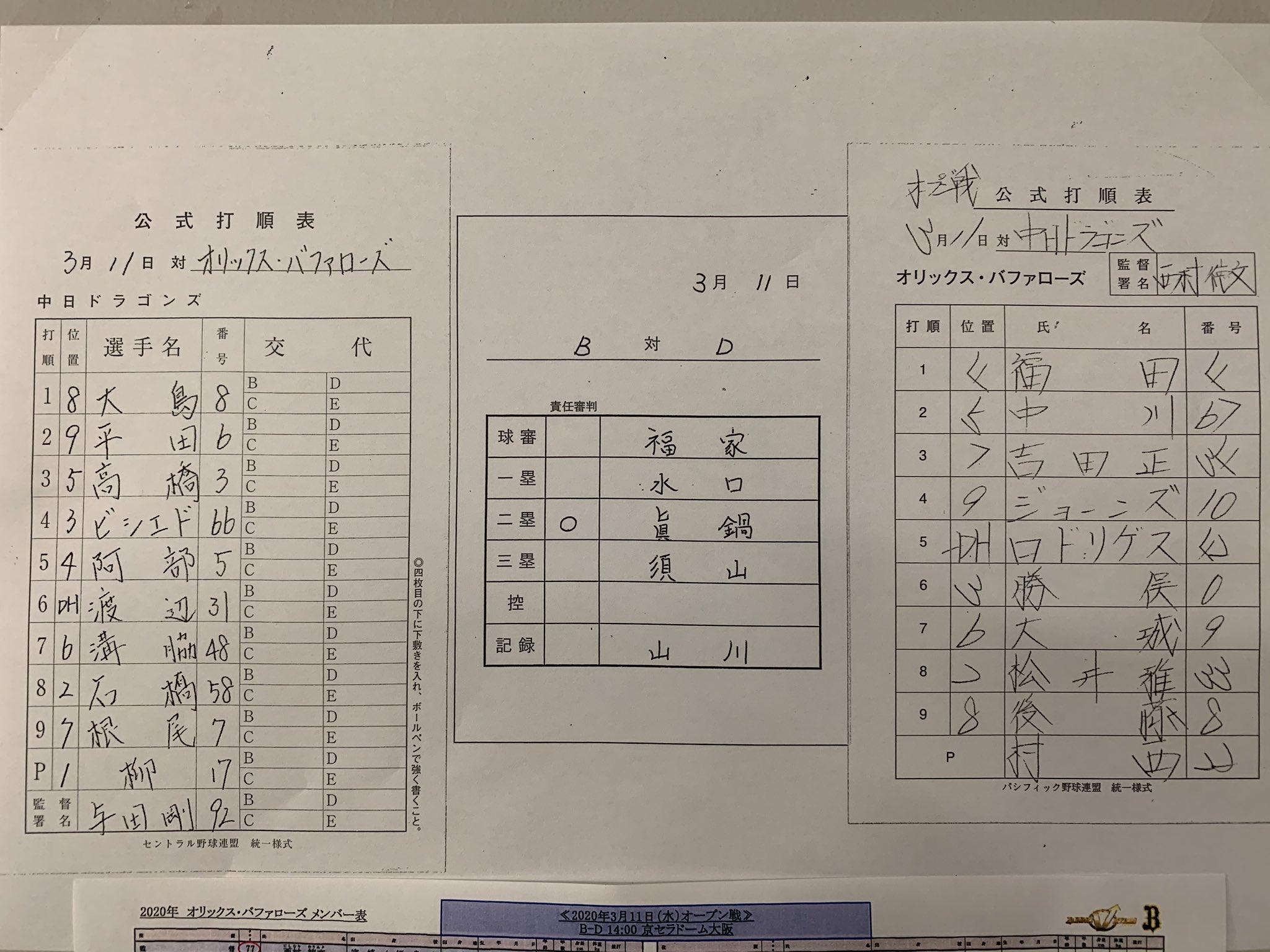 ■2020.03.11 オープン戦「オリックスvs.中日」