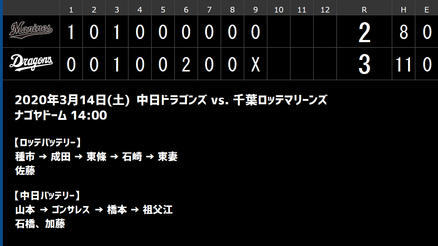 中日ドラゴンズ、3-2で勝利! これで3連勝です!