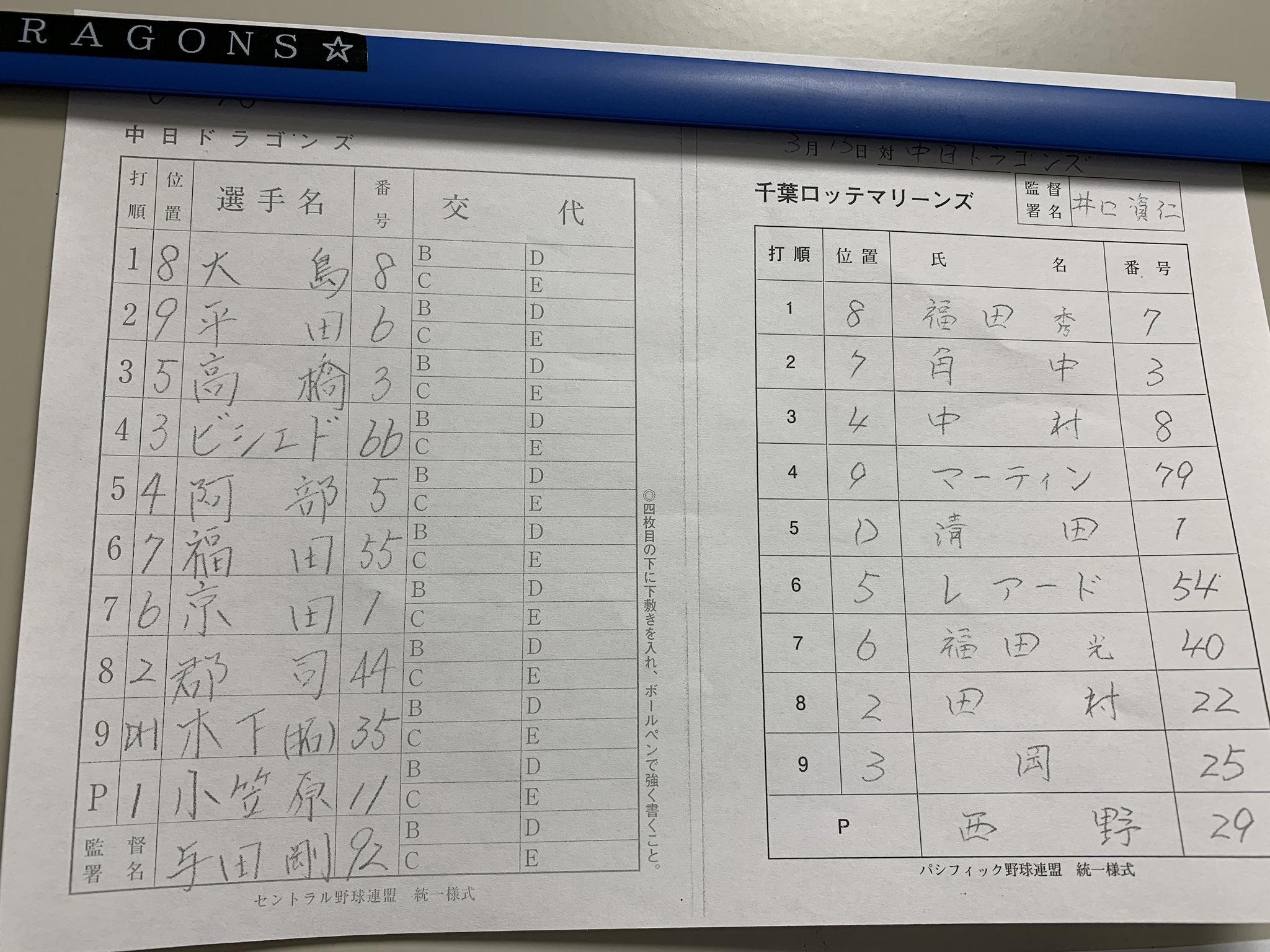 ─【オープン戦】中日ドラゴンズ vs 千葉ロッテマリーンズ 3回戦