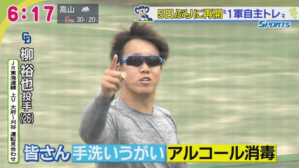 中日・柳裕也投手が呼びかけ「手洗い!うがい!アルコール消毒!」