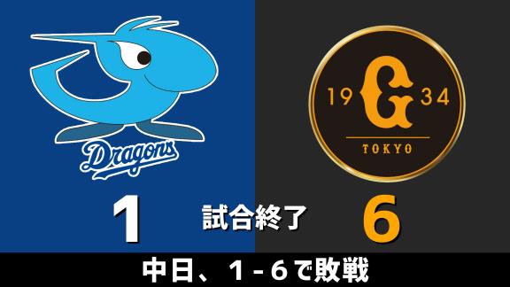 【中日 スタメン】 1(右)武田 健吾 .125 2(中)大島 洋平 .301 3(左)福田 永将 .219 4(一)ビシエド .321 5(二)阿部 寿樹 .240 6(遊)京田 陽太 .269 7(三)石川 昂弥 .136 8(捕)加藤 匠馬 .118 9(投)岡野 祐一郎 .000 P:岡野 祐一郎 防4.74 【巨人 スタメン】 1(左)亀井 善行 .286 2(遊)坂本 勇人 .229 3(中)丸 佳浩 .231 4(三)岡本 和真 .327 5(捕)大城 卓三 .316 6(一)中島 宏之 .253 7(右)パーラ .329 8(二)吉川 尚輝 .259 9(投)メルセデス .286 P:メルセデス 防3.80 |