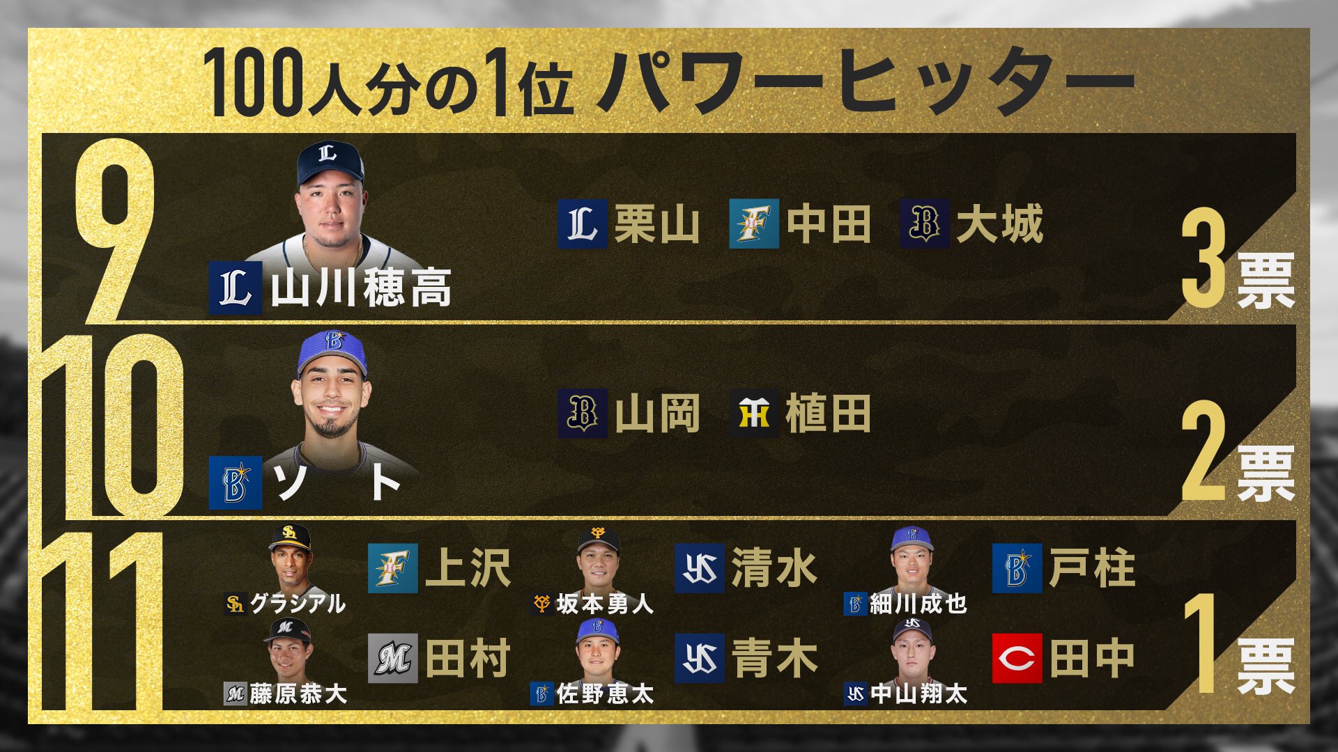 ▼2020年 S-PARK『プロ野球100人分の1位』パワーヒッター部門