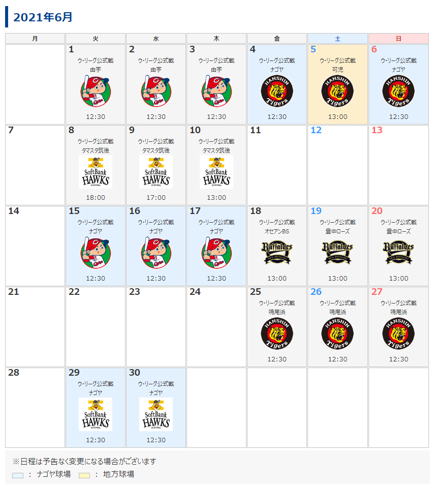 2021年度 ウエスタン・リーグ公式戦および春季教育リーグ 日程発表
