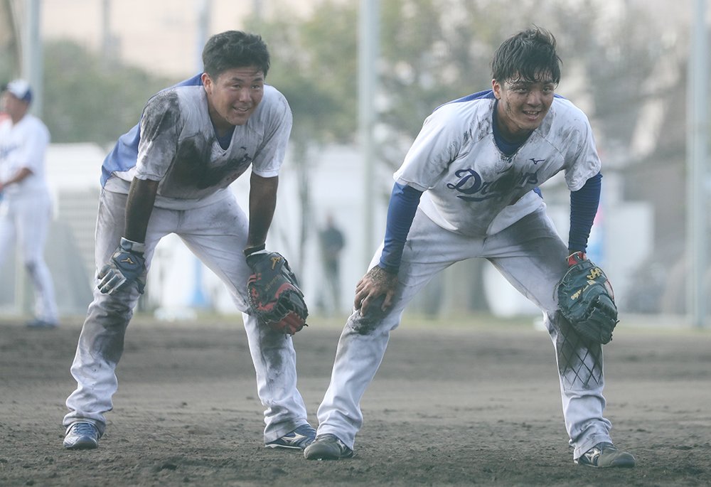 プロ選手もこれほどまでに泥だらけになるんです‼️昨日、実戦練習で共にホームランを放った木下拓、郡司両捕手。熾烈な争いは、中村コーチのノックでも❗️ アナ宮部#cbcラジオ#中日ドラゴンズ#沖縄キャンプ#ドラ魂キング#木下拓哉#郡司裕也 pic.twitter.com/QTSivOI1N6