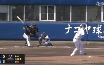 「えっぐい!(笑)」 中日・又吉克樹広報、真後ろからの“加藤バズーカ”を投稿する【動画】