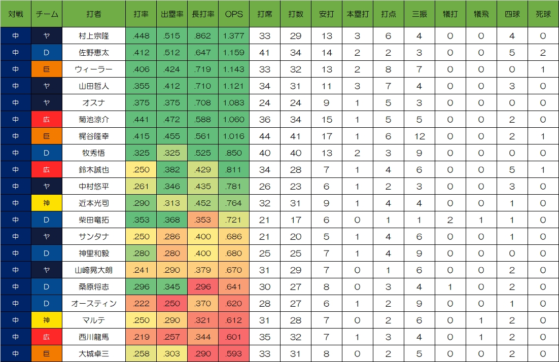 村上、山田、オスナらヤクルト打者陣が“中日キラー”に。ここを中心にしっかりと抑え込めるかがポイントですねぇ。
