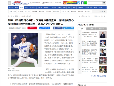 「(権利行使となれば)確実に複数球団が動きます。そこに向けて(複数球団が)本格的に調査をしていると聞いています