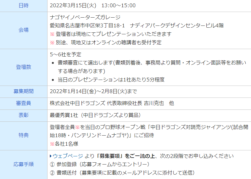 「中日ドラゴンズ・スタートアップピッチ」概要