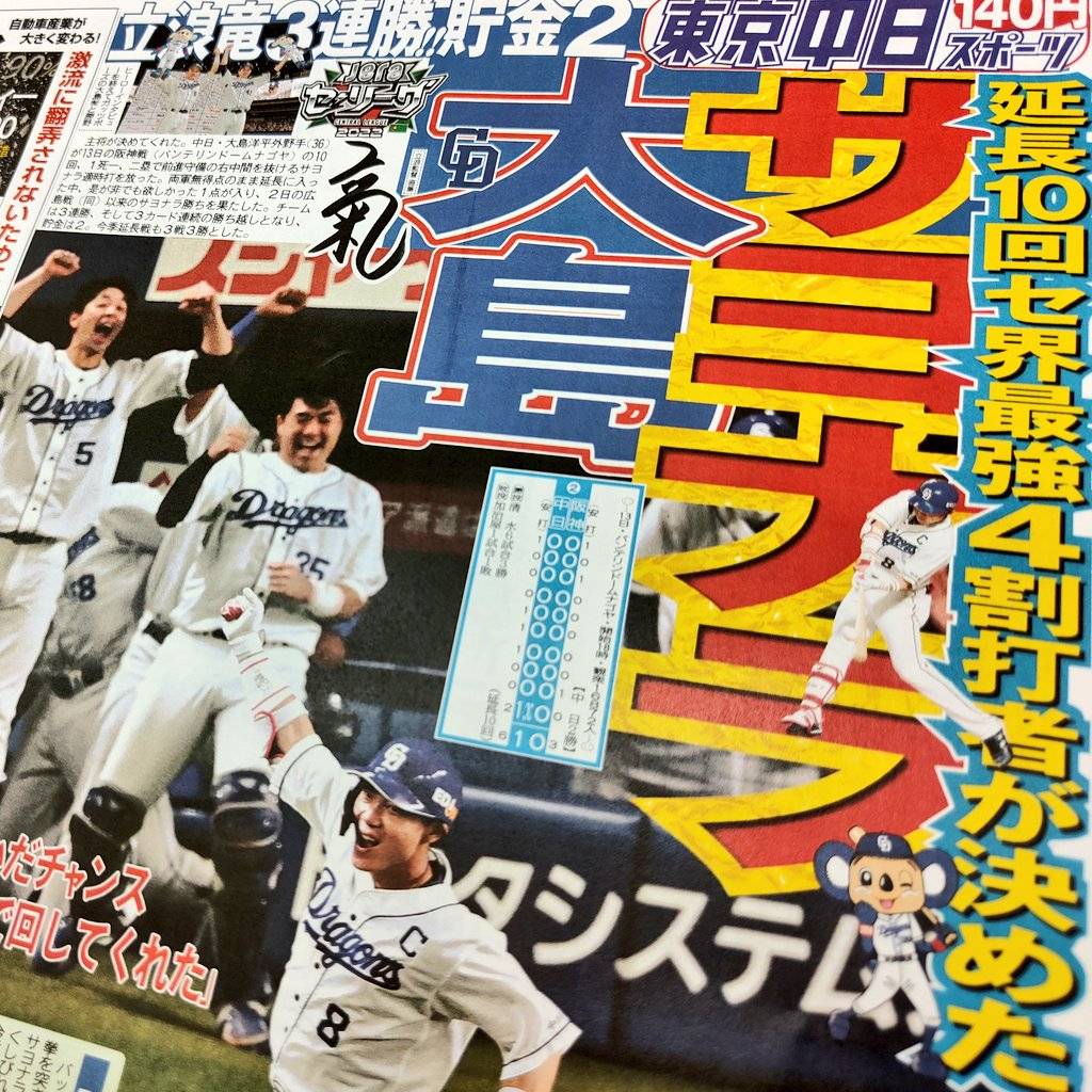 どらほ~! しびれる勝利が続きます!https://t.co/d8AO99Nsuj #中日ドラゴンズ #中日スポーツ
