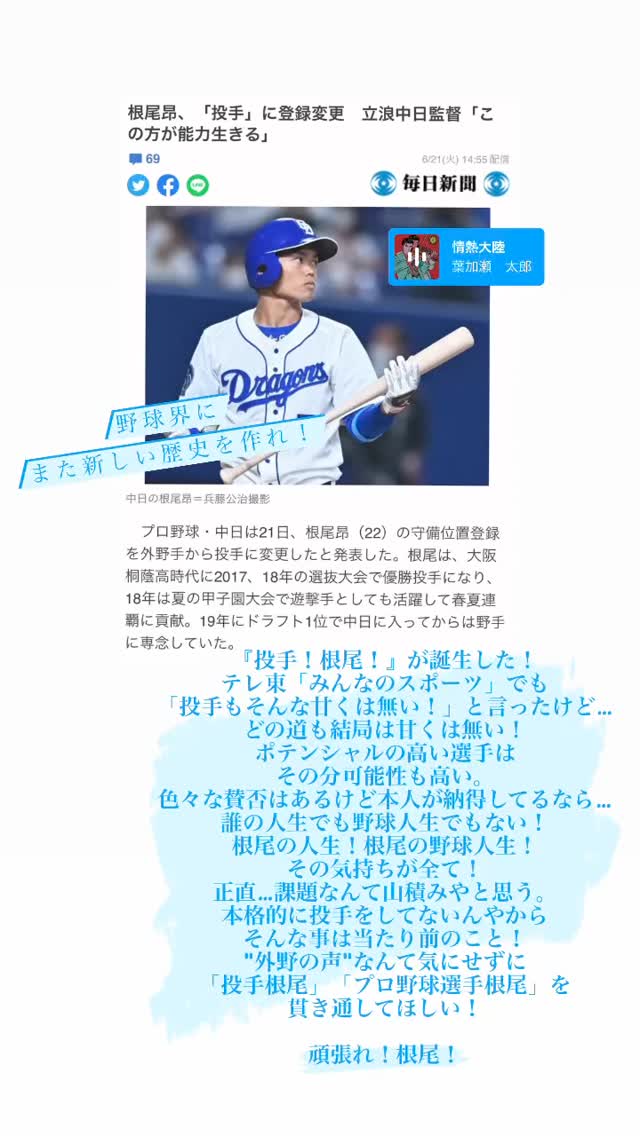 2022年06月22日 15:45 7コメント 2022.06.22.15.52 中日ドラゴンズのもとけ斉藤和巳さん「野球界に、また新しい歴史を作れ!」 ツイート シェア はてブ 送る Pocket ■2022.06.21 ⚾︎斉藤 和巳⚾︎【プロ野球解説者】(@kazumi.66)さん | Instagram … 斉藤和巳さん「『中6日もあるなら当たり前の事!』 大野雄大を中心に、中日投手陣の中では”当たり前”のように見える!」 斉藤和巳さん「肘以外は元気でしたよぉ〜 でも肘も今のところ順調に回復してるみたいですよぉ〜」 斉藤和巳さん、根尾選手にエールです。《このブログの更新通知をTwitterで受け取る》《コメント投稿フォームまで移動する》 にほんブログ村 中日ドラゴンズランキング