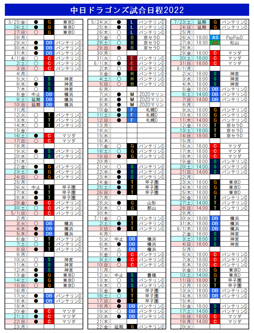 振替日程は決まり次第、中日ドラゴンズ公式ウエブサイト等でご案内申し上げます。