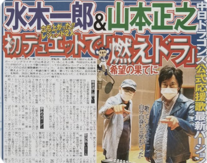 「一番大島塁に出て 二番続けよ岡林 三番ビシエドタイムリー 四番昂弥がホームラン♪」 水木一郎&山本正之、初デュエット!『燃えよドラゴンズ!希望の果てに』が作成される!!!