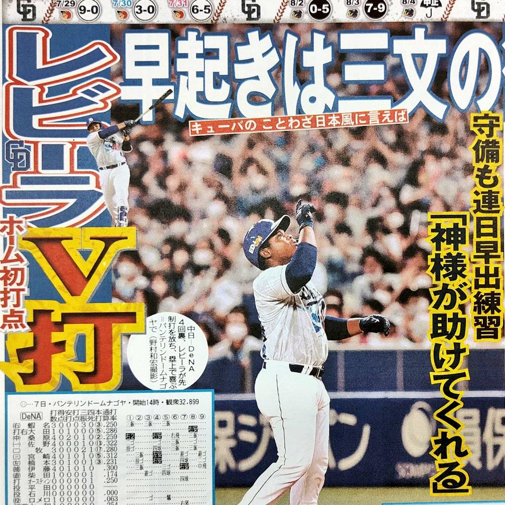 【中日】レビーラ、本拠地初打点が決勝点 「望んでいたチームの勝利に貢献できた」