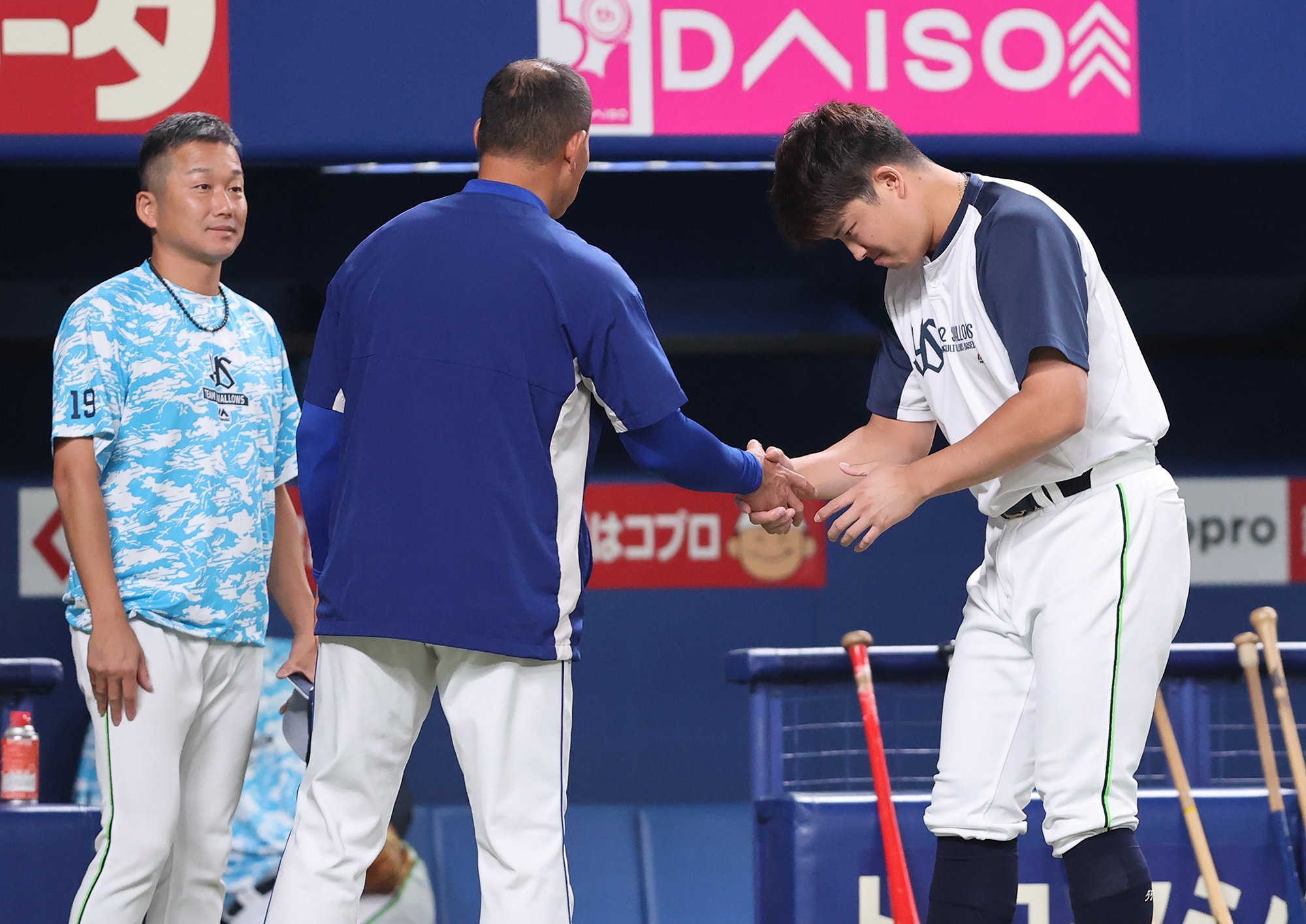 ヤクルト・村上選手からあいさつされる福留孝介選手🏏です❕