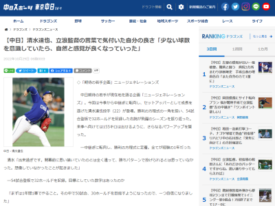 【中日】清水達也、立浪監督の言葉で気付いた自分の良さ「少ない球数を意識していたら、自然と感覚が良くなっていった」#ドラゴンズhttps://t.co/Pf3FnBxUGQ