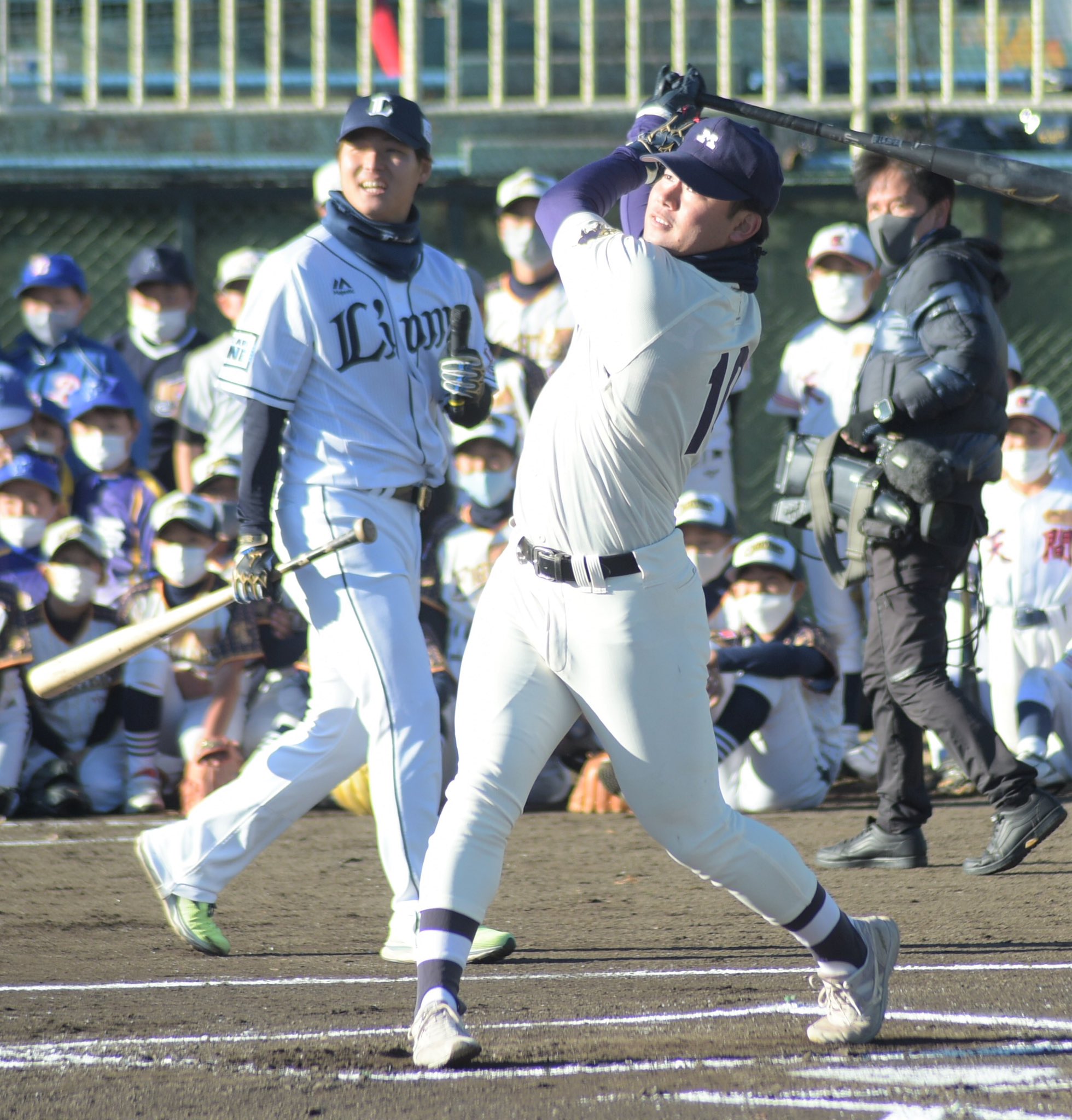 #埼玉西武ライオンズ の #鈴木将平 選手と #中日ドラゴンズ 入りが決まっている #村松開人 選手の #静岡高 OB2人がそろって富士球場で野球教室に参加しました。鈴木選手は後輩のプロ入りを歓迎し「村松なら大丈夫」と話していました。鈴木選手は最近ピラティスを始めたそうです。#静岡新聞