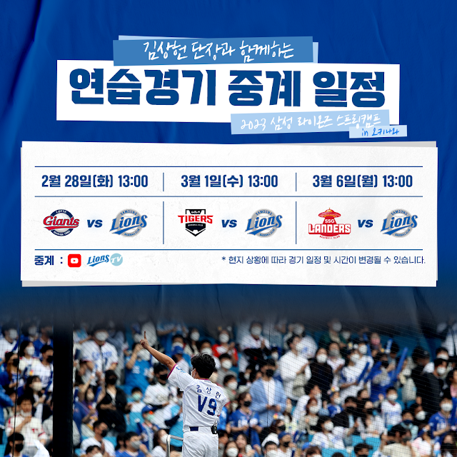 온나손 구장에서 펼쳐지는 국내팀 홈경기는 유튜브 라이온즈 tv에서 생중계로 시청할 수 있습니다.