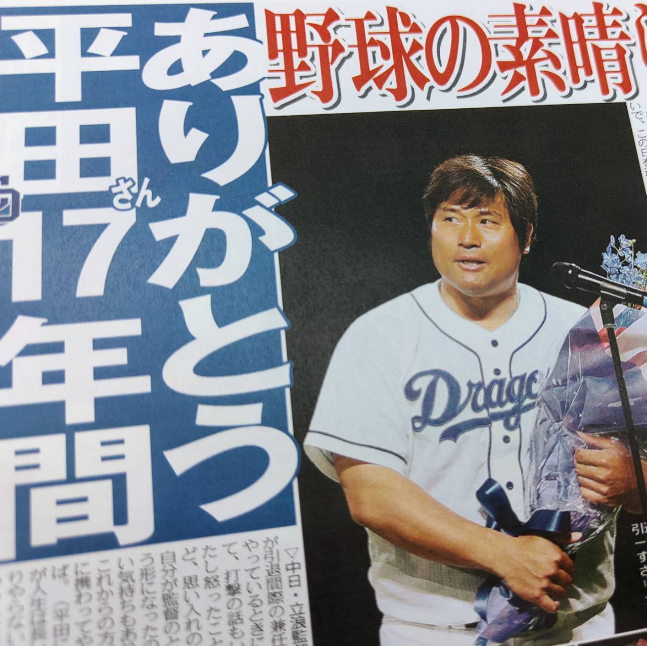 [#中日ドラゴンズ ]昨季限りで現役を引退した平田良介さんの引退セレモニーが行われた。本紙に独占手記を寄せ感謝の思いを語った。#平田良介 #東京中日スポーツ はWEB購入できます↓https://t.co/LHAA3LRXKI pic.twitter.com/yQ1tiMYqMc