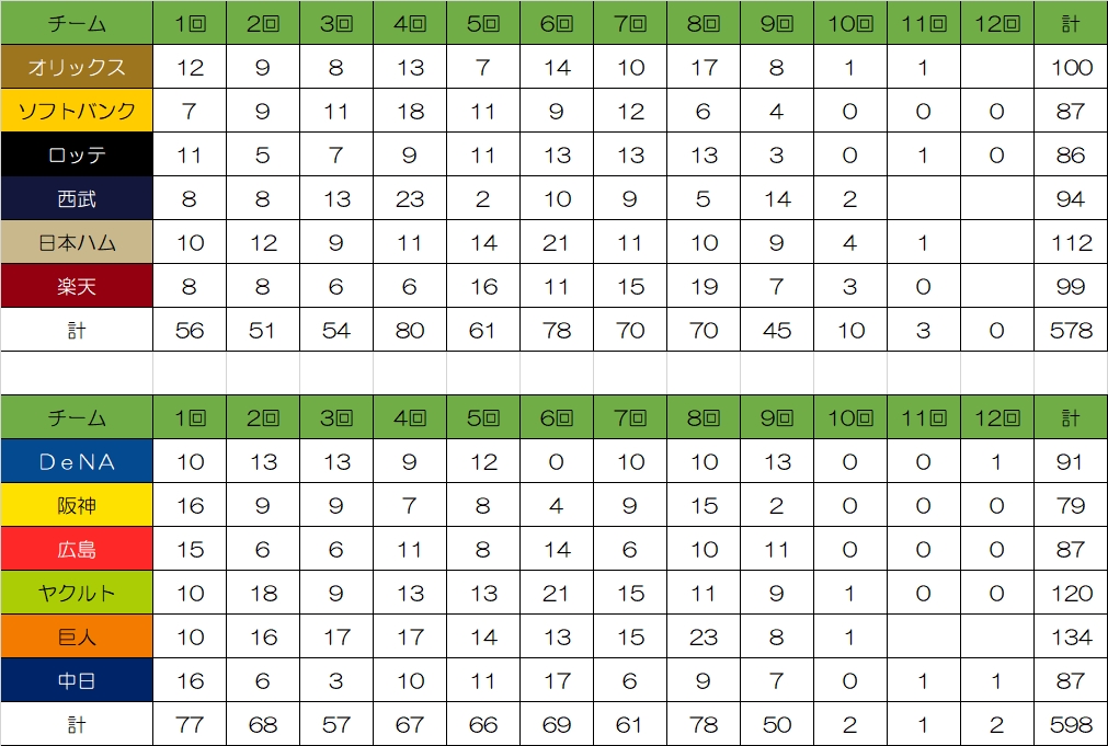 イニング別得点 pic.twitter.com/65ow1WiWEp