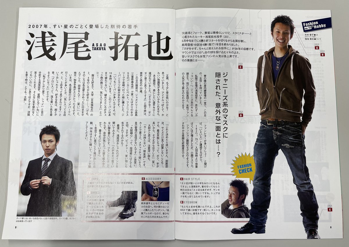 月刊ドラゴンズ「2007年1月号~2008年11月号では選手のファッションと趣味に迫った『Fashion&Hobby』を連載していました」