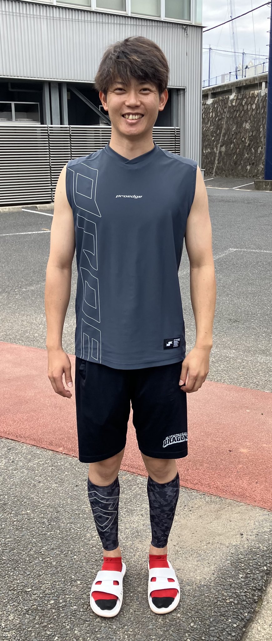 中日・岡田俊哉投手、ニッコリ笑顔を見せる