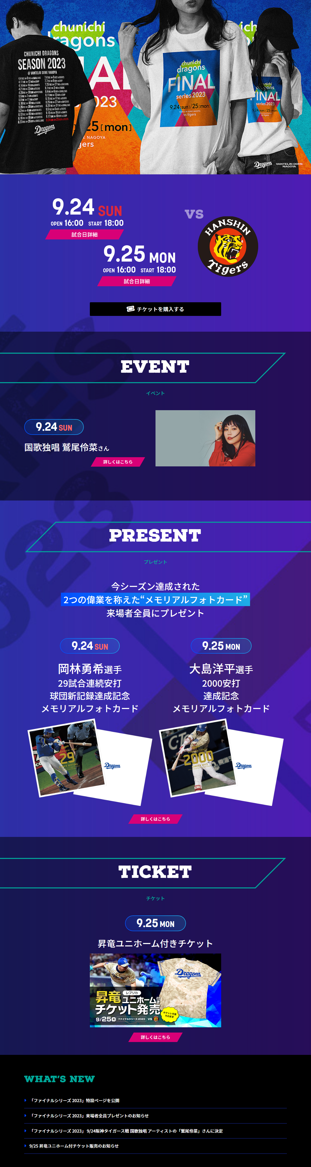 中日ドラゴンズ『ファイナルシリーズ 2023』特設ページが公開される!!!