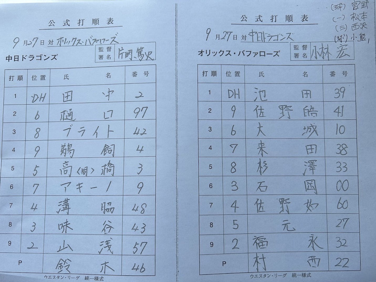 ■2023.09.27 ファーム公式戦「オリックスvs.中日」