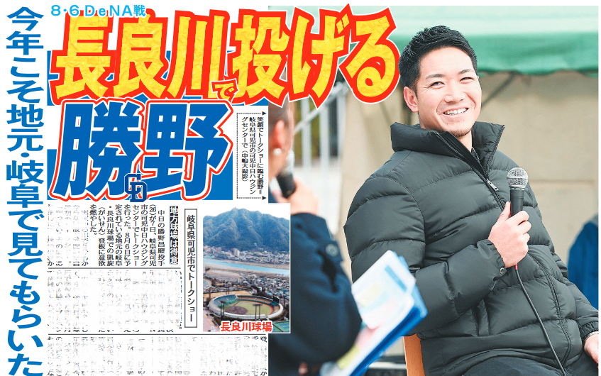 中日の勝野昌慶投手(26)が7日、岐阜県可児市の可児中日ハウジングセンターでトークショーを行った。8月6日に予定されている地元の岐阜・長良川球場での凱旋(がいせん)登板に意欲を燃やした。