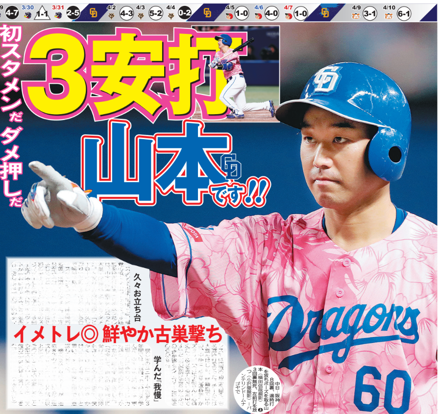 中日・山本泰寛が今季初スタメン起用 → 打ちまくってヒーローに!!!