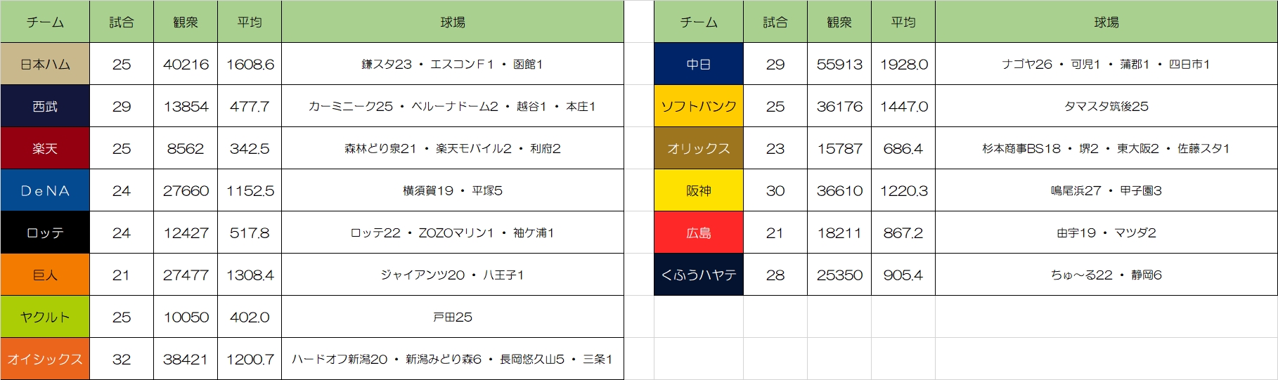 全てデーゲームでこの集客はたいしたものだな。平日にナイター開催ができればもう少し増えそうだな。選手のためにもナゴ球にナイター設備を設置してほしいところだが2000人なら東海3県の地方球場でも集客できそうだな。