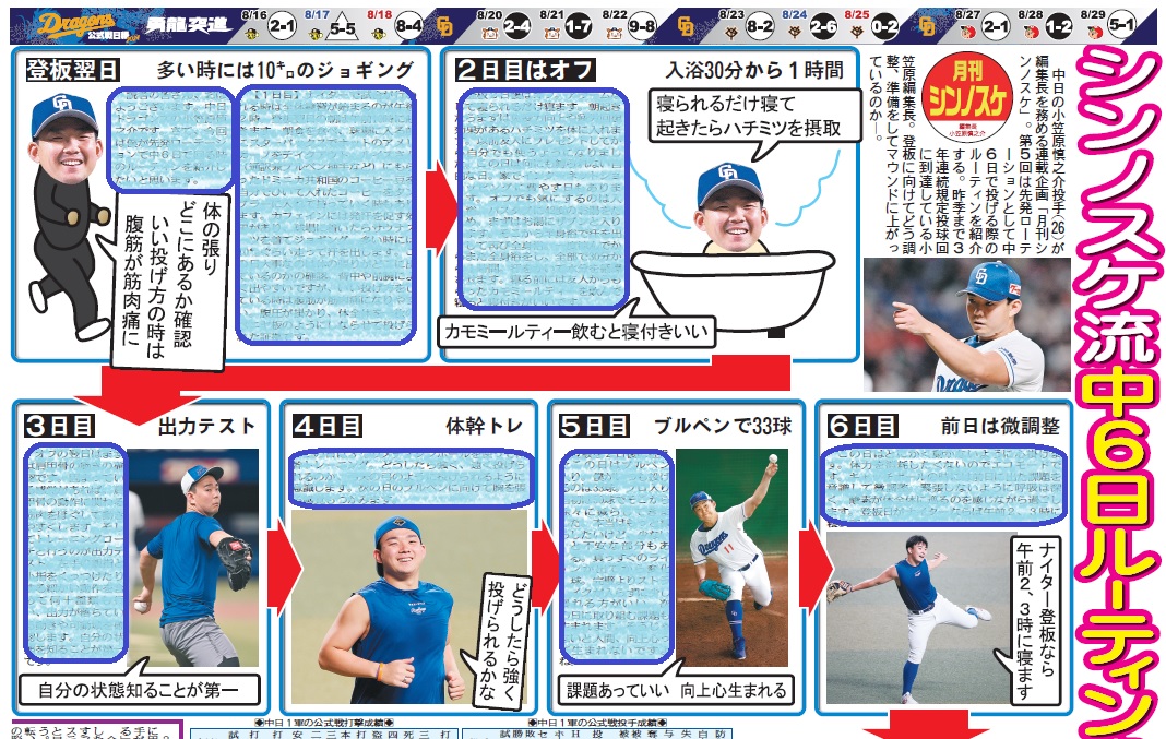 中日・小笠原慎之介編集長が”中6日ルーティン”をご紹介 先発登板へ向けどんな準備をしているのか【月刊シンノスケ】