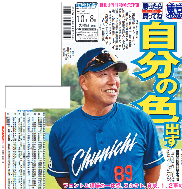— 東京中日スポーツ (@tochu_sports) October 7, 2024