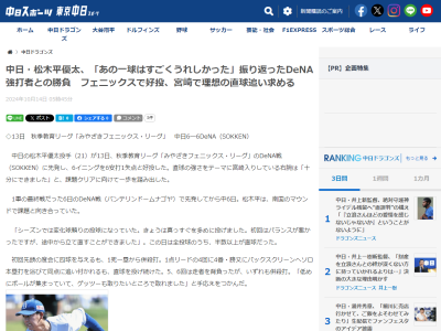 中日・松木平優太、「あの一球はすごくうれしかった」振り返ったDeNA強打者との勝負 フェニックスで好投、宮崎で理想の直球追い求める