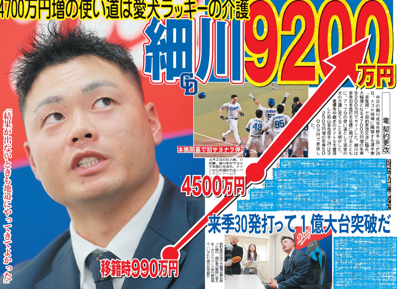 中日・細川成也、「結果が出ないときも地道にやってきてよかった」1億円の大台も射程圏内「来季は30本塁打をクリアしたい」
