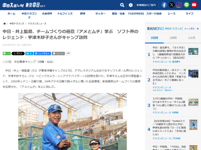 中日・井上監督、チームづくりの極意『アメとムチ』学ぶ ソフト界のレジェンド・宇津木妙子さんがキャンプ訪問#中日 #井上監督 #宇津木妙子https://t.co/DEArnh9Sii