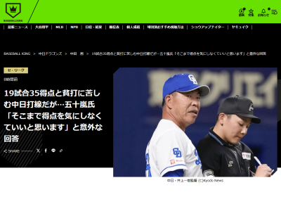 19試合35得点と貧打に苦しむ中日打線だが…五十嵐氏「そこまで得点を気にしなくていいと思います」と意外な回答