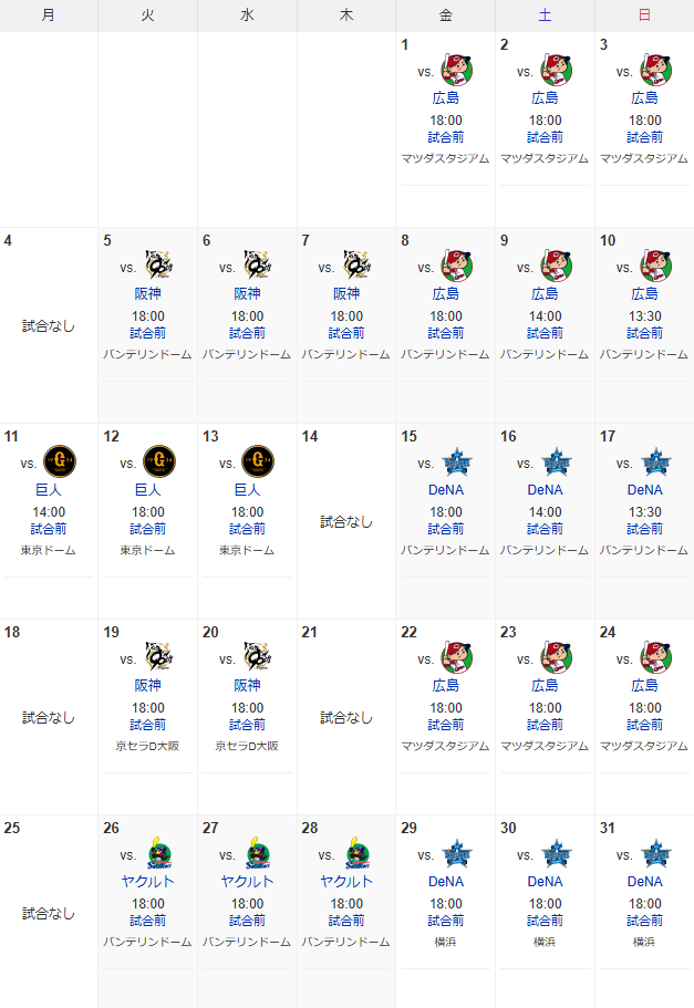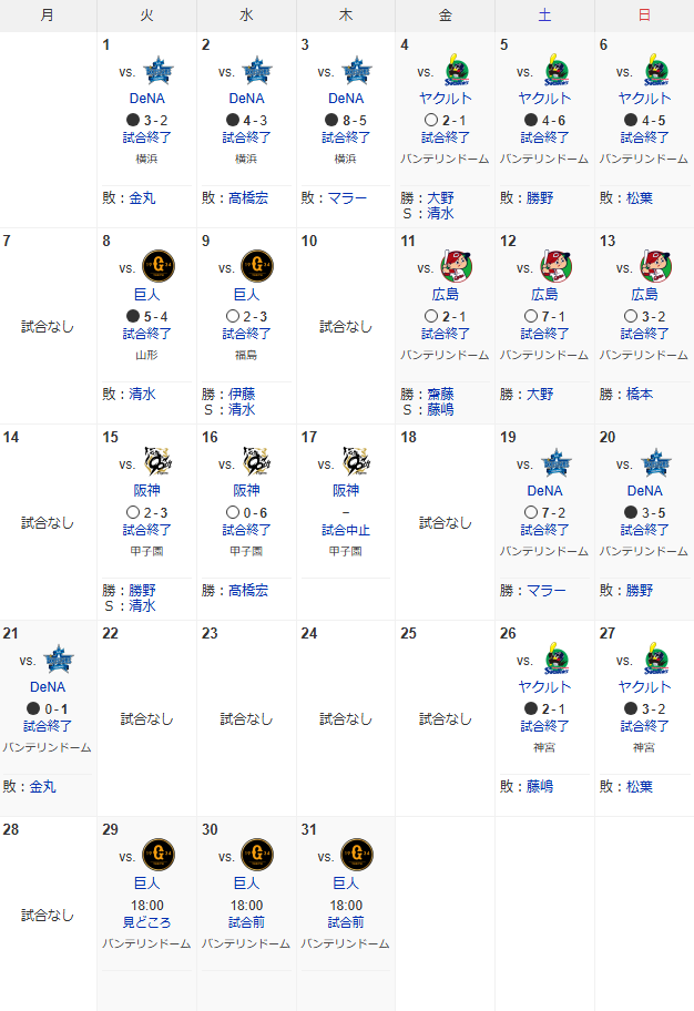 2025年07月29日 01:30 0コメント 中日ドラゴンズのもとけ中日ドラゴンズ、今後の試合日程 次はバンテリンドーム・巨人戦へ ツイート シェア はてブ 送る Pocket ■2025.07.28 中日ドラゴンズ試合日程【7月-8月】 東海ラジオによる、巨人戦・広島戦の中日ドラゴンズ先発予想 中日ドラゴンズ、現在の個人打撃成績 OPSランキング(7月27日終了時点) 今後の試合日程です。《このブログの更新通知をTwitterで受け取る》《コメント投稿フォームまで移動する》 にほんブログ村 中日ドラゴンズランキング