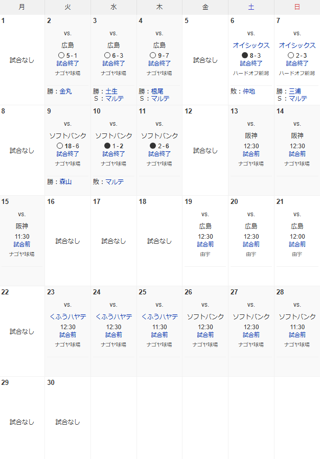 2025年09月12日 10:00 0コメント 中日ドラゴンズのもとけ中日ドラゴンズ2軍、次は阪神戦へ 今後の試合日程 ツイート シェア はてブ 送る Pocket ■2025.09.12 中日ドラゴンズ2軍試合日程【9月・10月】 中日・落合英二2軍監督、祖父江大輔の今後の起用について示唆する 中日ドラフト3位・森駿太、ここまでのルーキーイヤーの“反省すべきところ”を語る 今後の試合日程です。《このブログの更新通知をTwitterで受け取る》《コメント投稿フォームまで移動する》 にほんブログ村 中日ドラゴンズランキング