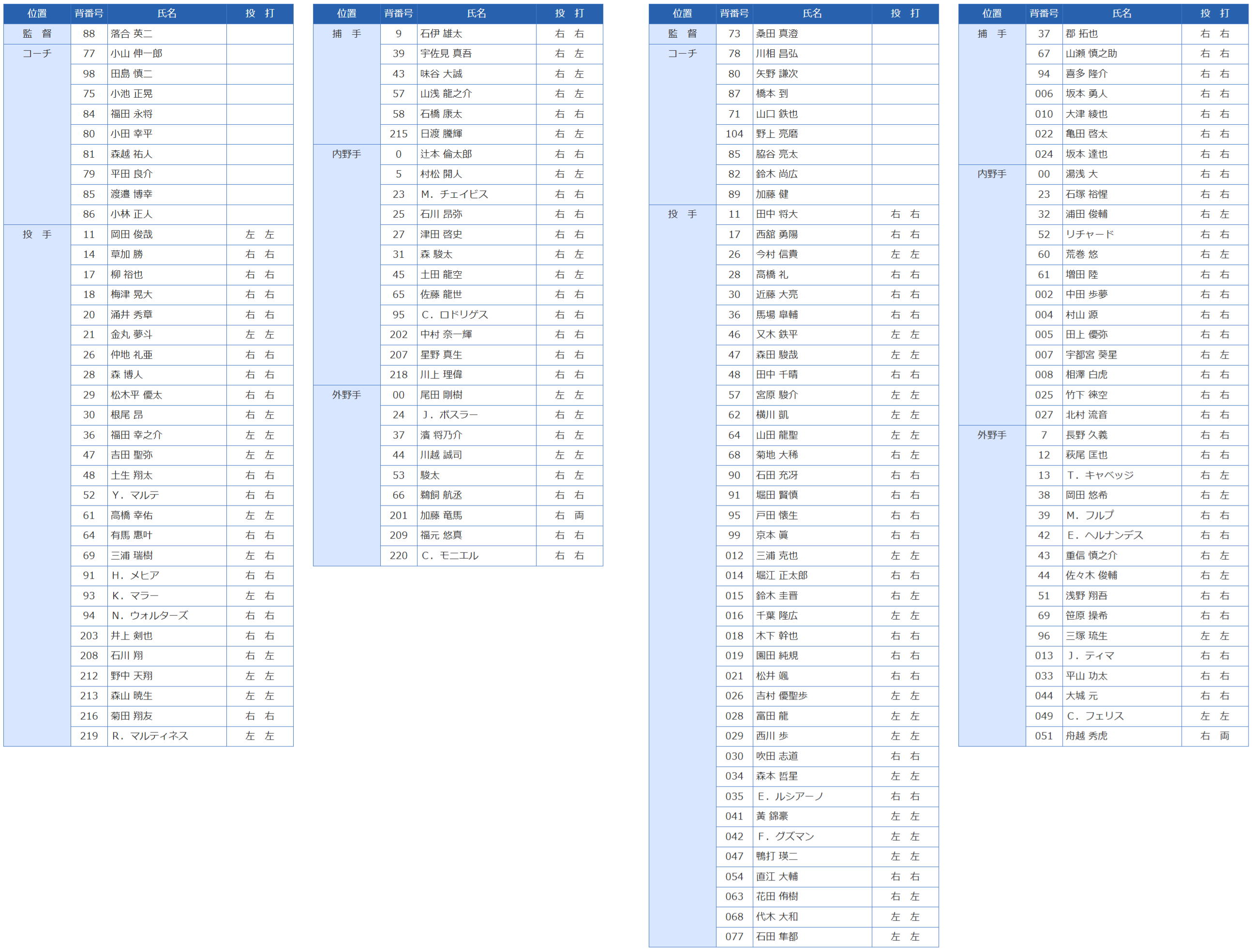 ボスラーとマラーは帰国したんじゃね。鵜飼、福元、佐藤龍はほぼ二軍で出てたからスタメンでもいいと思う。