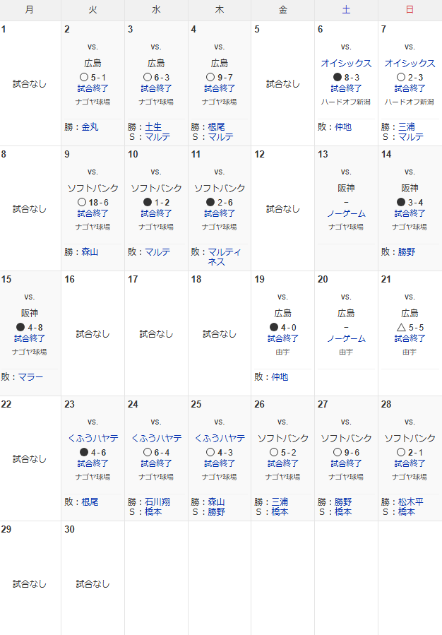 【中日 スタメン】