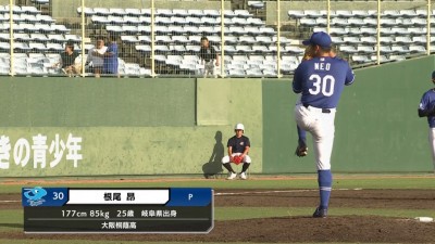 大差をつけて迎えた9回、4番手でマウンドに上がった育成・森山が2点を奪われ、なおも1死満塁のピンチでマウンドへ。湯浅に押し出し四球を許したが、4番・ティマをスライダーで見逃し三振、最後は浅野を一ゴロに封じた。「2死までアキオ(森山)がいって、最後『行くかもしれない』とは言われていました」。予定より状況は厳しくなったが、大量失点は許さず試合を締めた。