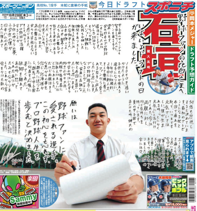 スポニチのドラフト予想です。