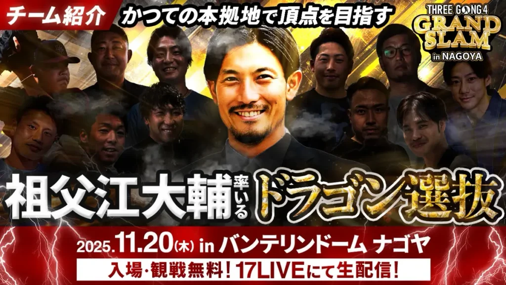 元中日・祖父江大輔さんが監督に!!! 『THREE GONG』、“ドラゴン選抜”